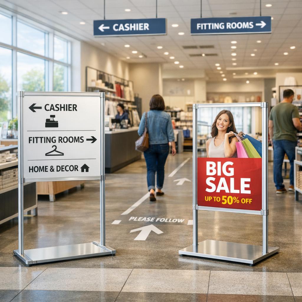 Beispielsweise helfen Plakatständer, wichtige Informationen sichtbar zu platzieren. Sie weisen auf Sonderaktionen hin oder leiten zu Kassen und Beratungstheken. So entsteht eine klare Struktur, die den Einkaufsprozess erleichtert.